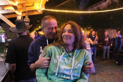 Immer und immer wieder schaffte es die Band die Stimmung auf zu heizen, es wurde getanzt und mitgesungen. Nebelschwaden und Lichteffekte motzten das Ganze noch auf und brachten das Publikum fast zum überkochen. Verena hatte wieder ihre Mega guten Burger und Würstchen im Angebot und bereitete beides mit der Hilfe von Tatjana zu, Melissa, die beste Chefoberkellnerin überhaupt, ist auf Weltreise und leider nicht dabei gewesen, so sammelte Isabel, ihre Mutter, mit meinem Hut ein, was der Abend den Gästen Wert war und da kam was zusammen! Als Tatjana merkte, dass ich es alleine nicht schaffte die Gäste mit Getränken zu versorgen, schaltete sie sich ein und ich merkte, welches von mir nicht erkannte Talent in Tatjana schlummerte. Sie war mir eine wirklich große Hilfe und niemand musste vor Durst verschmachten. Um Mitternacht hatte Timo Glaum Geburtstag und da wurde gerade rein gefeiert. Overtime gab den musikalischen Rahmen dazu und Timo ein „Bierbuffet“.